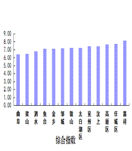 环境空气质量综合指数最好的县(市、区)是曲阜市,为6.45,最差的县(市、区)是嘉祥县,为8.20;同比改善幅度最大的县(市、区)是鱼台县,为29.7%,同比改善幅度最小的县(市、区)是任城区,为7.4%。