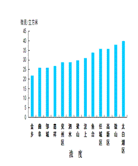 可吸入颗粒物浓度最好的县(市、区)是曲阜市,为93微克/立方米;最差的县(市、区)是高新区,为129微克/立方米;同比改善幅度最大的县(市、区)是梁山县,为46.4%,同比改善幅度最小的县(市、区)是高新区,为17.3%。