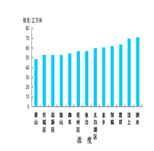 细颗粒物浓度最好的县(市、区)是梁山县,为49微克/立方米;最差的县(市、区)是泗水县,为71微克/立方米;同比改善幅度最大的县(市、区)是梁山县,为52.0%,同比改善幅度最小的县(市、区)是泗水县,为19.3%。