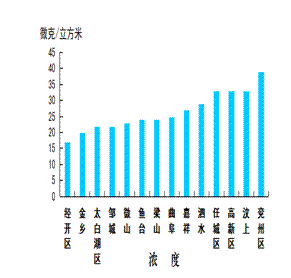 细颗粒物浓度最好的县(市、区)是曲阜市,为42微克/立方米;最差的县(市、区)是汶上县,为63微克/立方米;同比改善幅度最大的县(市、区)是金乡县,为19.4%,同比恶化幅度最大的县(市、区)是汶上县,为46.5%。