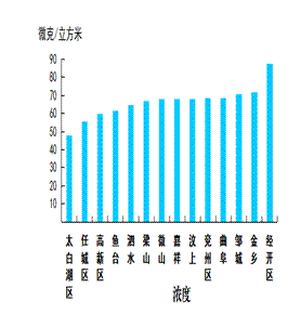 细颗粒物浓度最好的县(市、区)是太白湖区,为48微克/立方米;最差的是经开区,为88微克/立方米;同比改善幅度最大的县(市、区)是太白湖区,为37.7%,同比恶化幅度最大的县(市、区)是梁山县,为17.5%。
