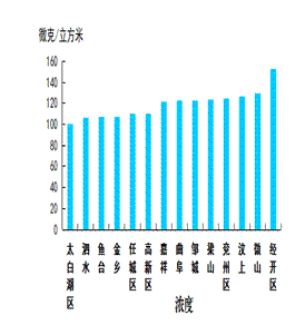 可吸入颗粒物浓度最好的县(市、区)是太白湖区,为101微克/立方米;最差的是经开区,为153微克/立方米;同比改善幅度最大的县(市、区)是太白湖区,为15.8%,同比恶化幅度最大的县(市、区)是泗水县,为24.4%。