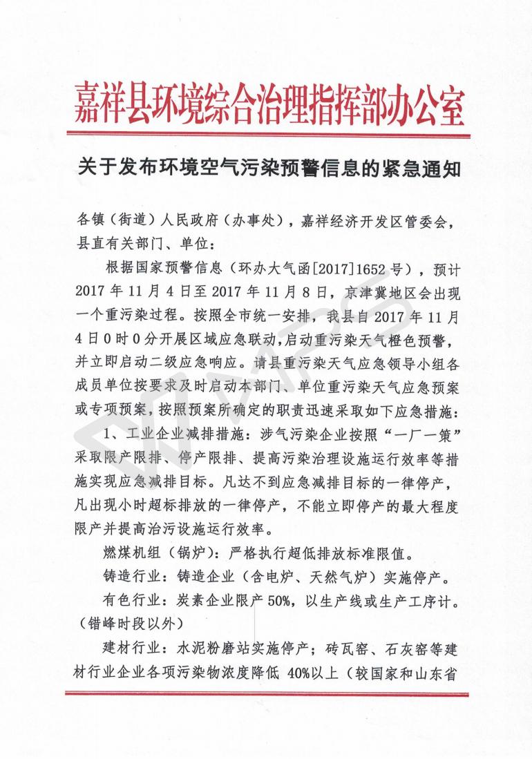 嘉祥县关于发布环境空气污染预警信息的紧急通知